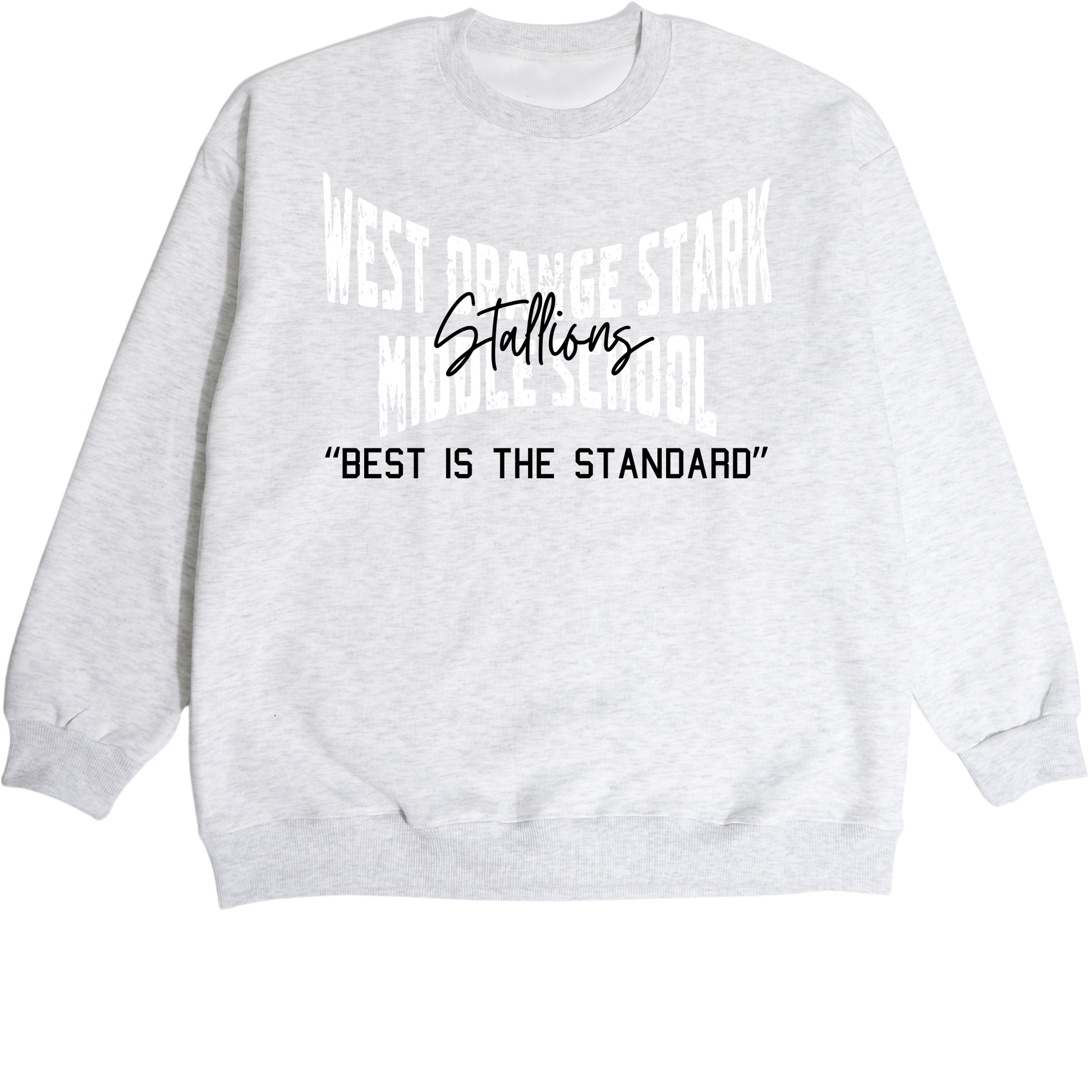 The West Orange Stark Middle School Stallion Sweatshirt combines premium comfort with exceptional versatility. Built on Gildan's Heavy Blend Fleece foundation—a proven 50/50 cotton-polyester blend weighing 8 oz.—this crew neck delivers reliable warmth and durability. Reinforced with pill-resistant air jet yarn and double-needle stitching, it withstands repeated wear and washing.